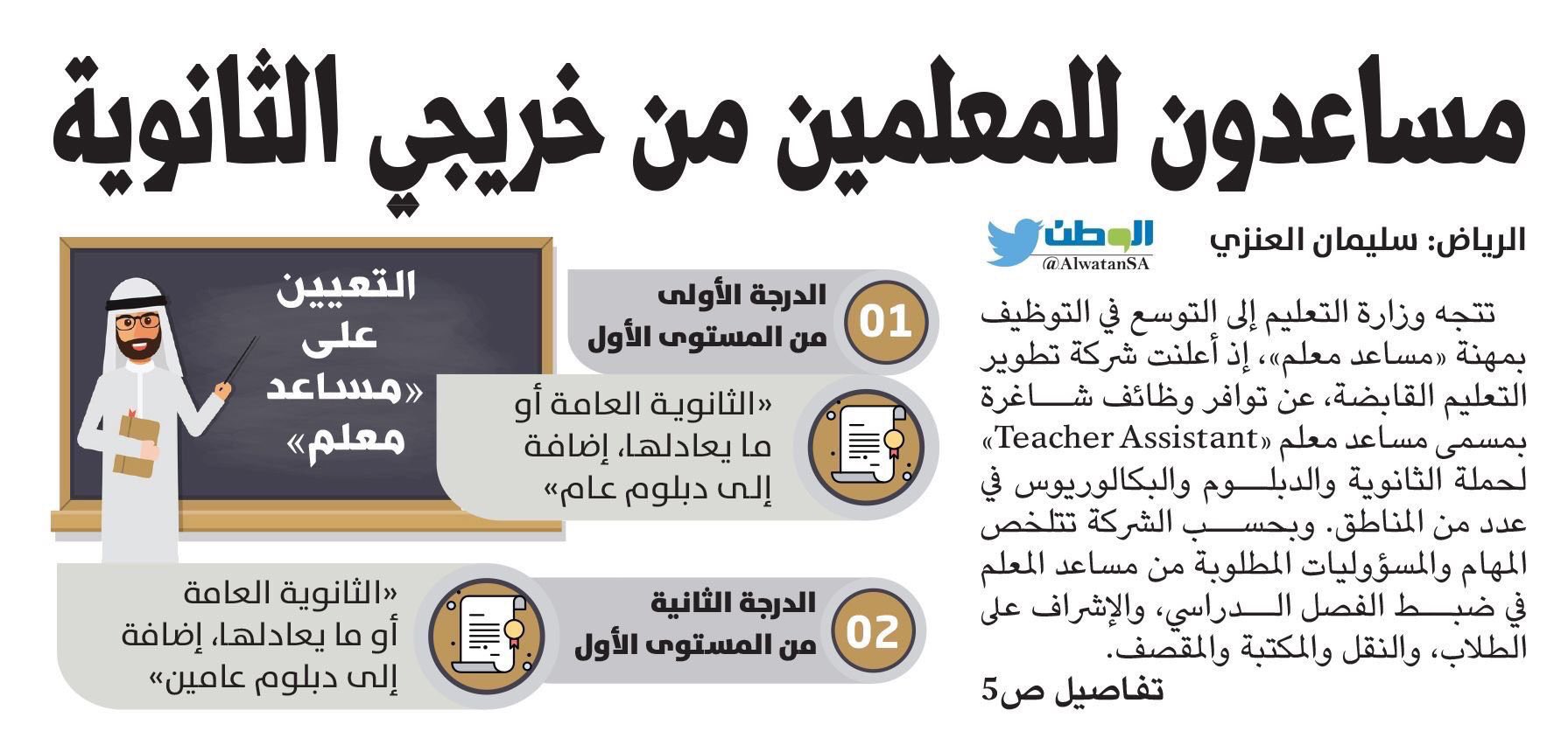 اعلان وظائف مساعد معلم وزارة التعليم السعودية 1440 منبع الحلول